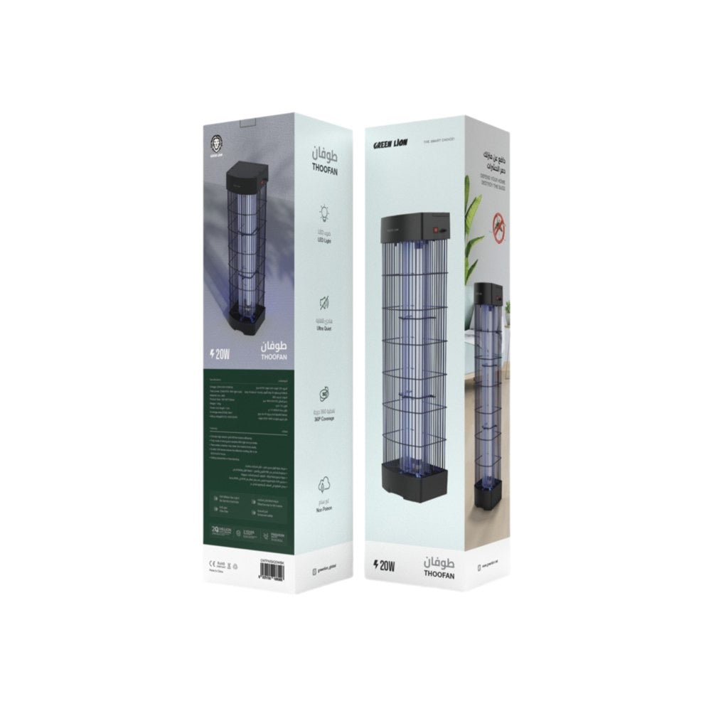 Description The Green Lion Thoofan Insect Killer keeps the pest away from your zone. This insect killer peaks with power to guarantee the highest efficiency while ensuring safe operation with a powerful 20W system with an IAWW light tube that covers areas up to 60m². The LED light attracts insects, leaving super-silence behind to ensure a serene atmosphere. 360° coverage with a high-voltage killer grid of 1800-2000V ensures the killing of the most unwanted pests without using poisonous chemicals. Since it is non-poisonous, it is safe for home and office use. Its construction is such that it is rugged and durable and made of iron and ABS, having a 1-meter long power cord for convenience and reliability. SpecificationVoltage: 220V-240V 50/60Hz Total Power: 20W (1PCS 18W Light Tube) Material: Iron, ABS Power Cord Length: 1.0m Coverage Area (SQM): 60m² Killing Voltage: 1800-2000V Features LED Light Ultra Quiet 360° Coverage Non Poison