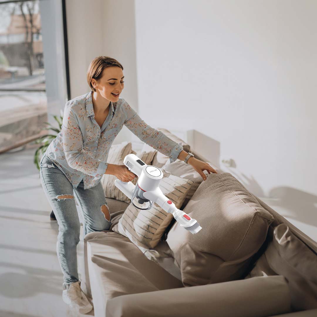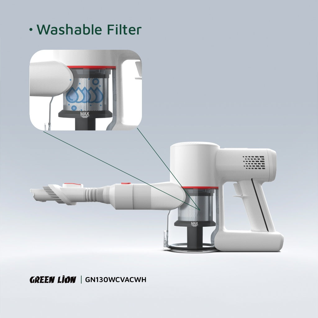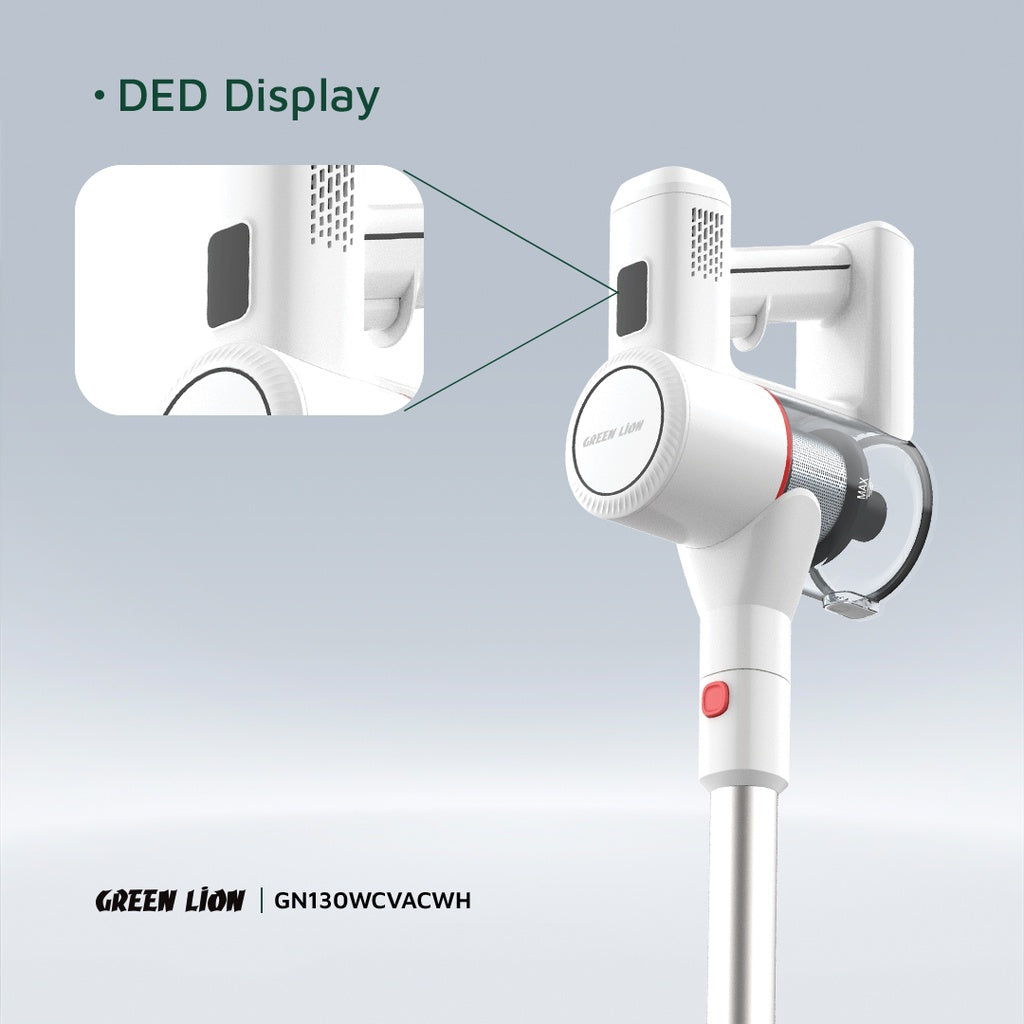 Say goodbye to cleaning struggles with your new best friend, the Green Lion Turbo Vacuum! This lightweight tool will make cleaning a breeze. It transforms into a handheld hero, allowing you to clean hard-to-reach areas. When the dustbin is full, just click a button, and it empties effortlessly. You're in control with the power settings displayed on the handy LED screen: Gentle or Mighty, you decide the cleaning power you need! Breathe easy and enjoy clean air with the 5-stage filtration system, including a washable filter that saves you money on replacements. The built-in LED light, illuminates every corner so you can capture even the tiniest particles. The motorized brush sweeps away dirt and debris with ease.