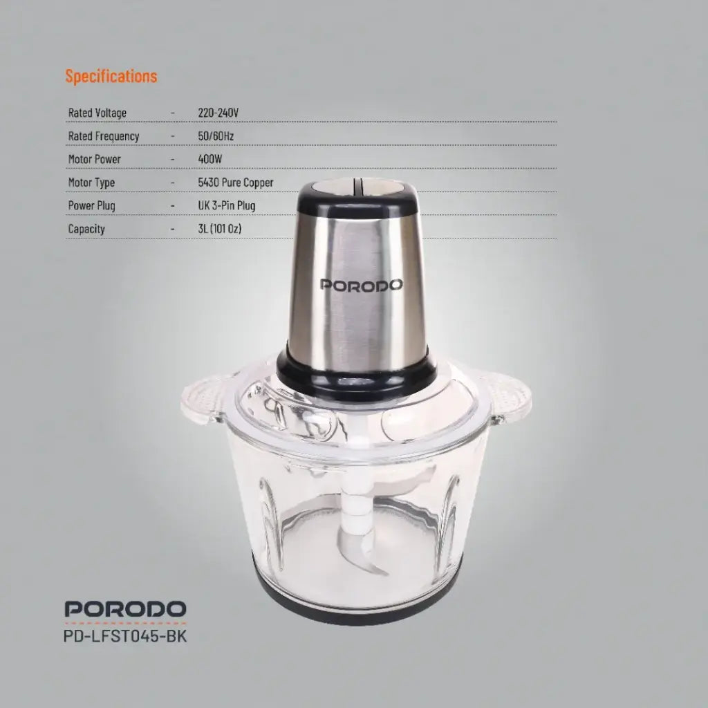 Porodo Lifestyle Meat and Vegetable Electric Food Chopper - Black