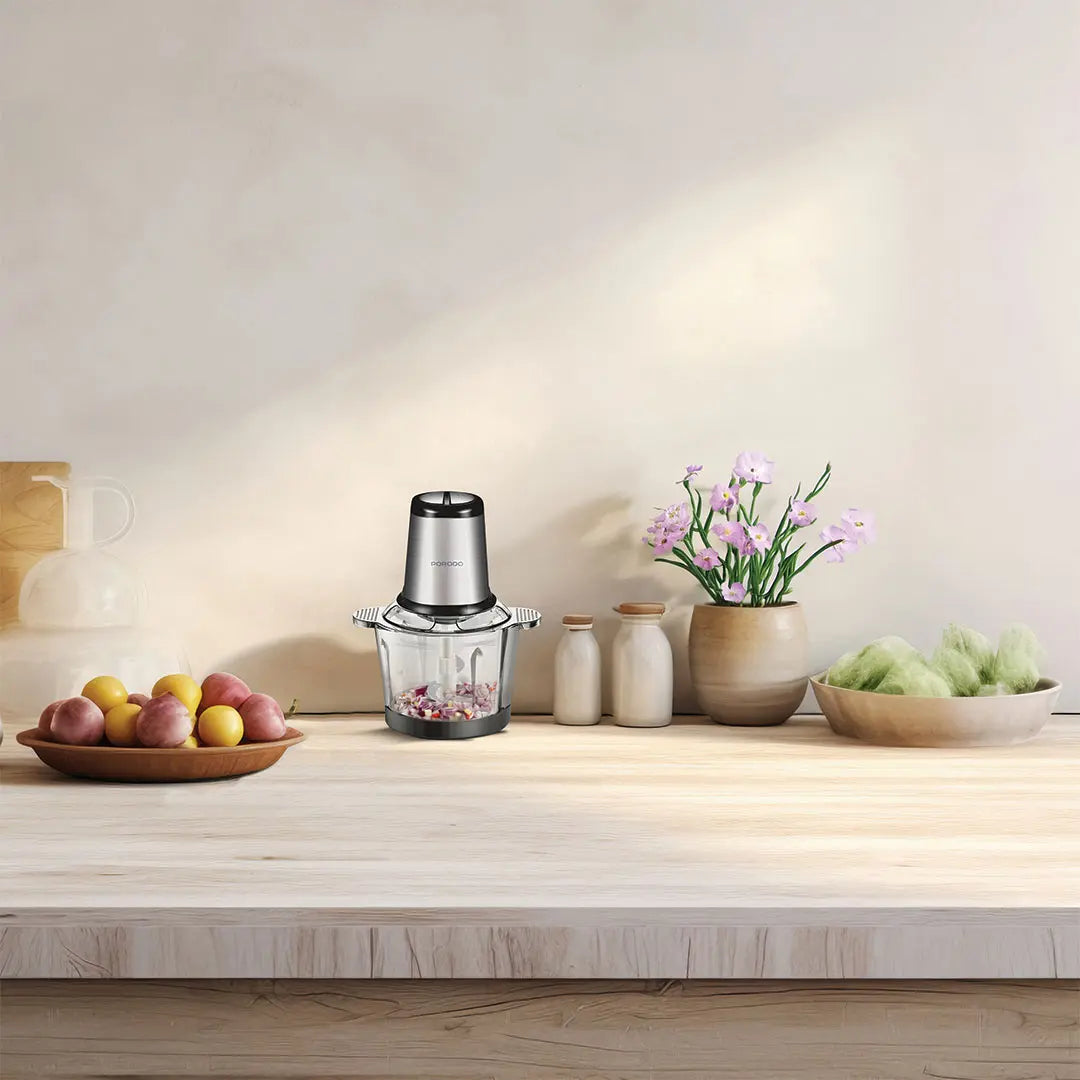 Porodo Lifestyle Meat and Vegetable Electric Food Chopper is a very handy, easy-to-use appliance that saves time in preparing your food. This product is equipped with a 400W Pure copper motor-powered, which ensures that chopping, mincing, and blending functions are done quickly and consistently. Powered up to 3L in capacity with Settings of 0–2 speeds, it is suitable for all ingredients: meats and vegetables. High-performance blades offer the perfect cut and tool attachment for versatility. The nonslip bottom provides you balance while using it, and a UK 3-pin plug for universal compatibility. This food chopper combines durability and performance with ease of use and is a must-have product in every modern kitchen.