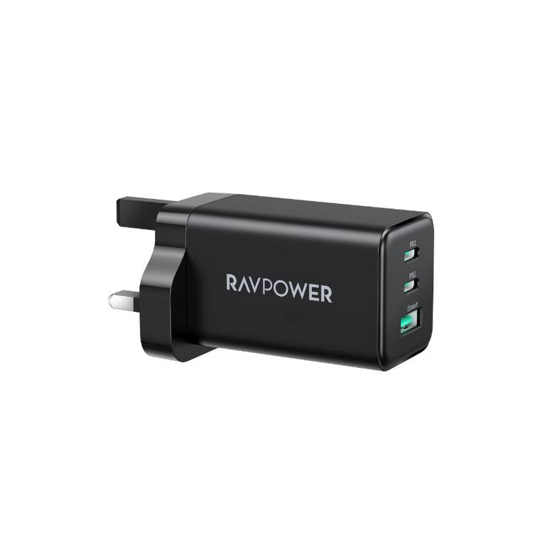 - RAVPower wall charger with 2 PD ports and 1 USB port.